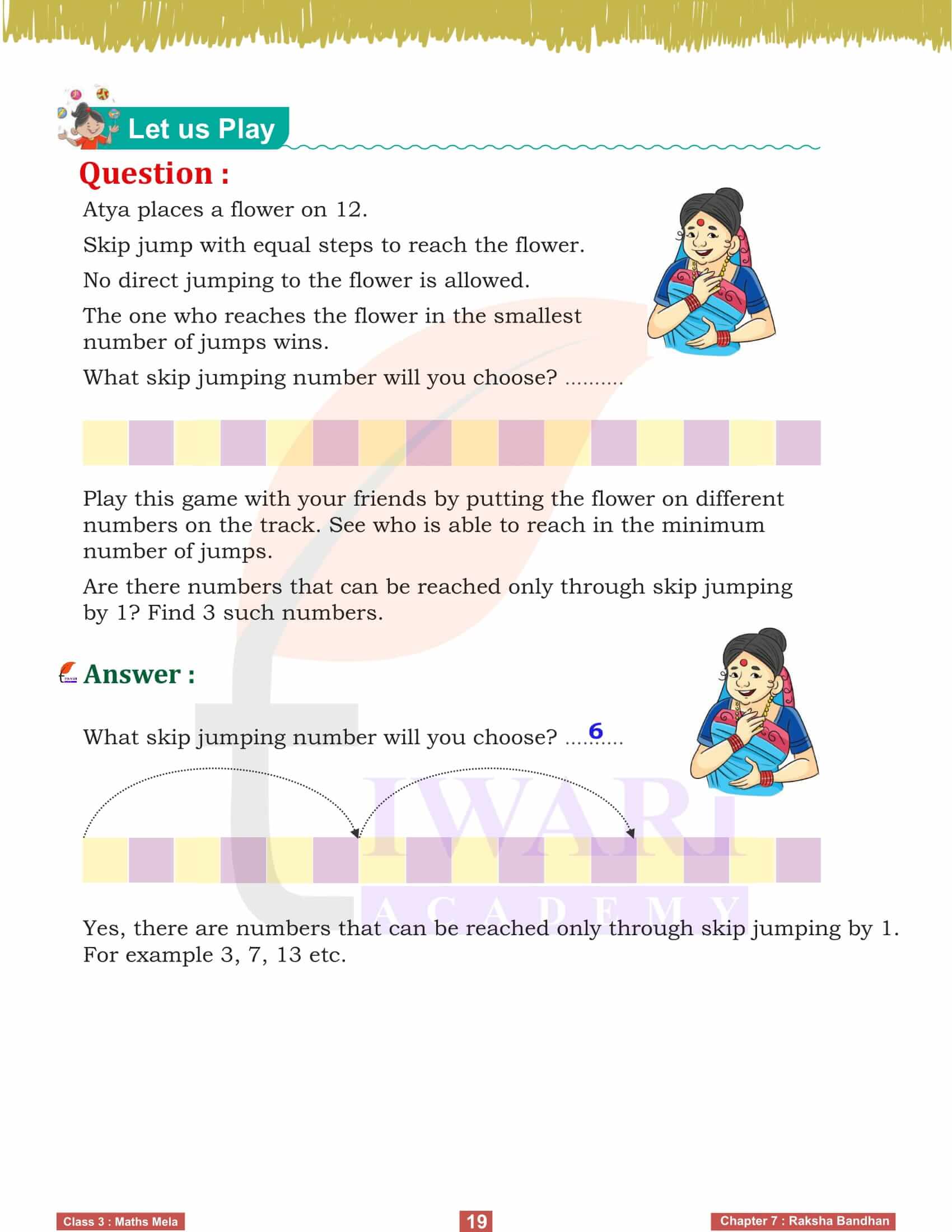 NCERT Solutions for Class 3 Maths Mela Chapter 7 Raksha Bandhan in Hindi and English Medium revised for session 2025-26. Chapter 7 uses the festival of Raksha Bandhan to teach patterns and sequences. Students explore various patterns in Rakhi designs and learn to create their own. They also practice identifying and continuing sequences, enhancing their ability to recognize mathematical patterns in different contexts.