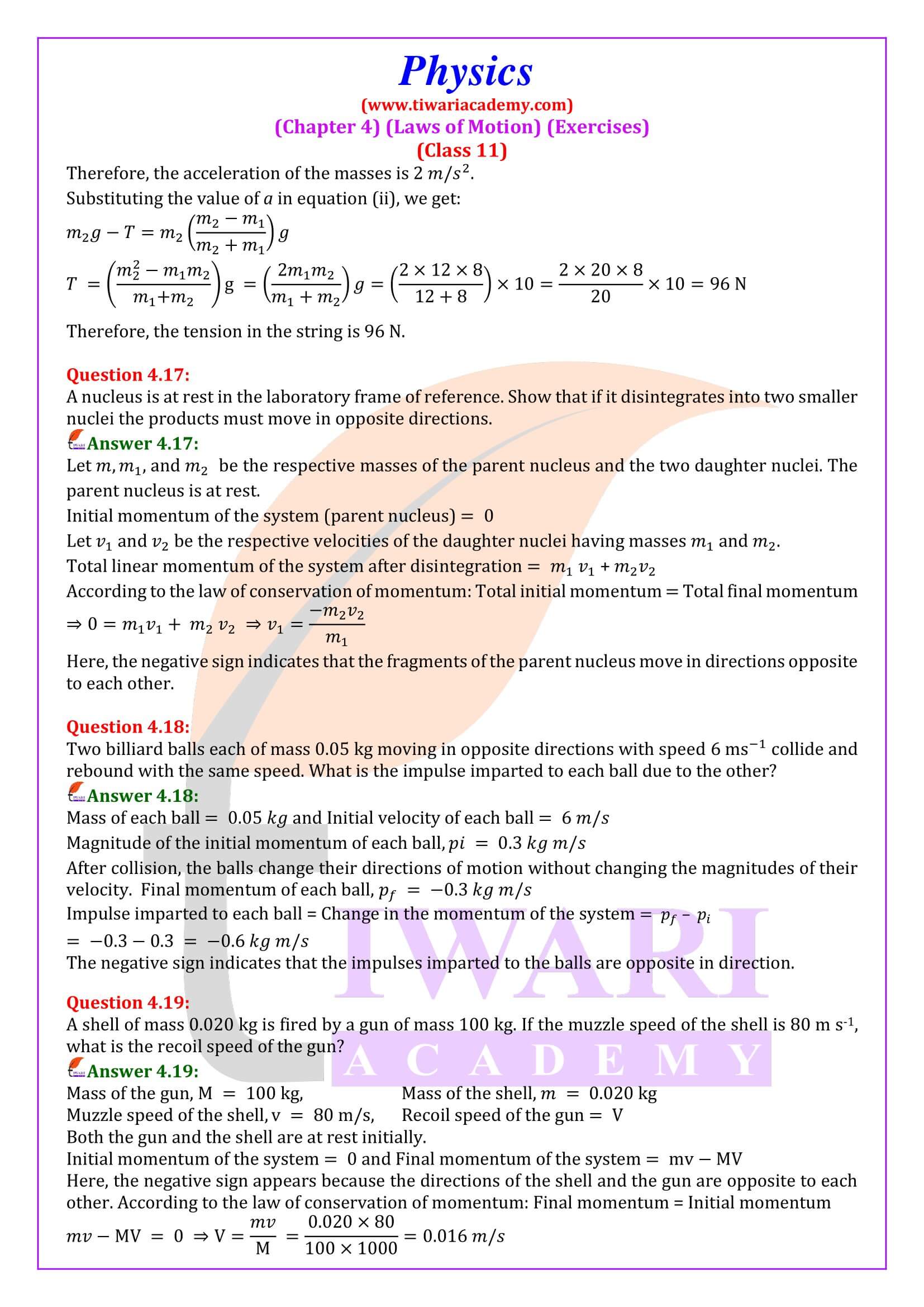 Class 11 Physics Chapter 4 Laws of Motion Question Answers