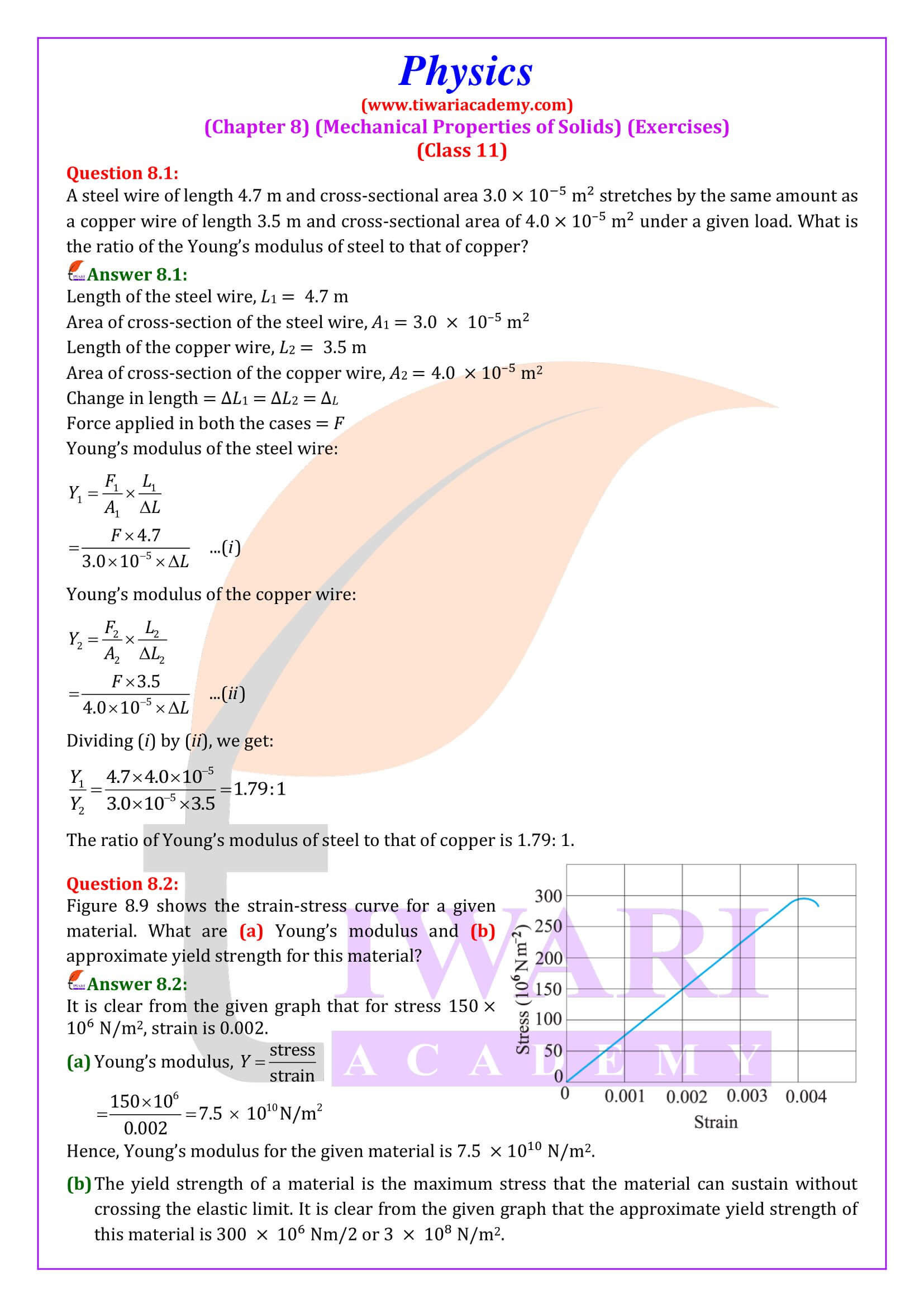 Class 11 Physics Chapter 8 Mechanical Properties of Solids Questions Answers