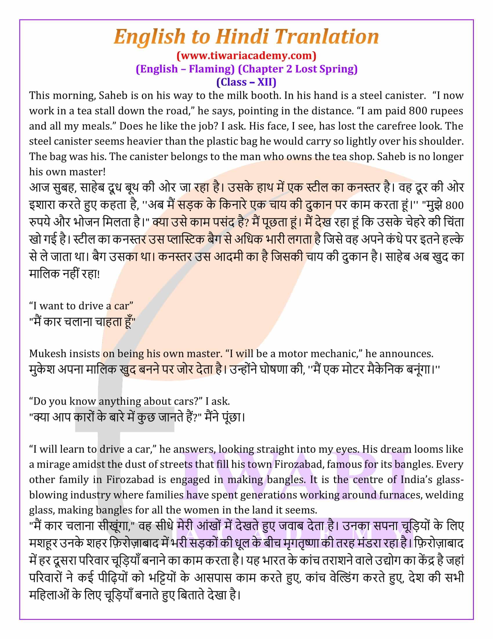 NCERT Solutions for Class 12 English Chapter 2 Lost Spring with Hindi Translation Flamingo for academic year 2025-26. For the practice of exams and revision, MCQ, English to Hindi Translation, extra questions of short answer type and long answer type are also given here with answers.