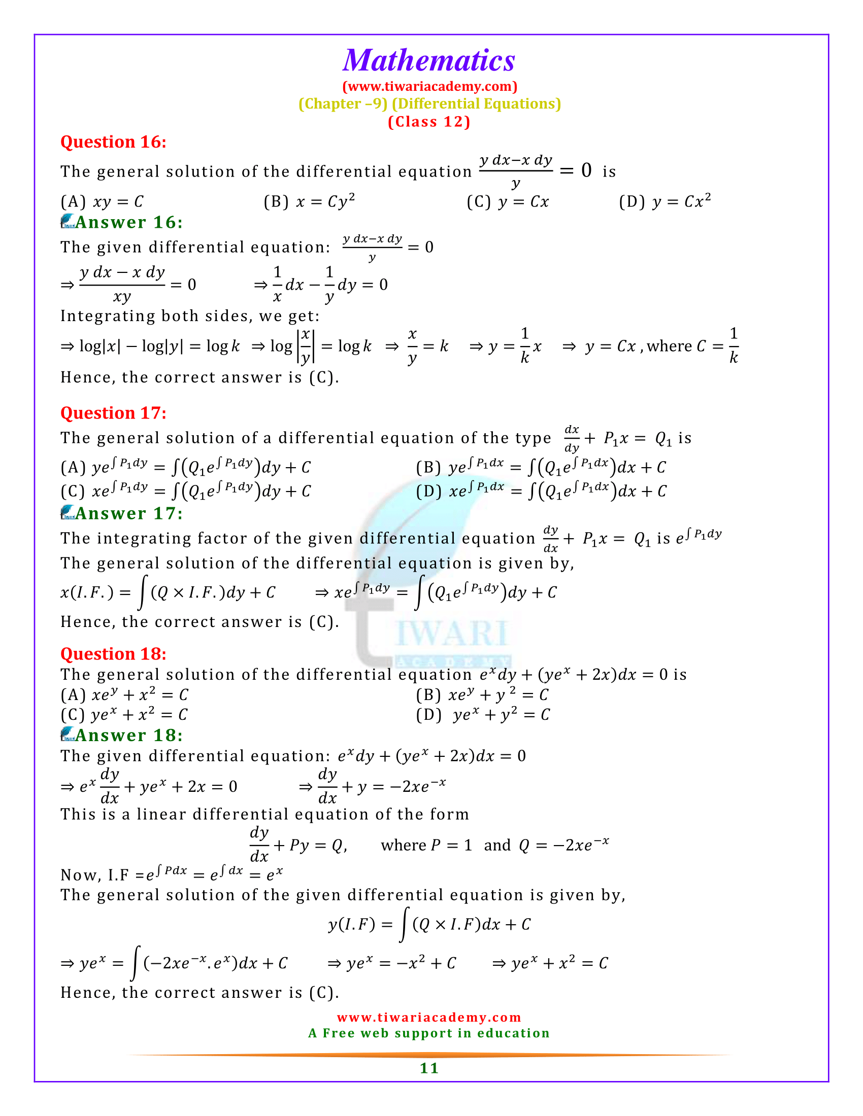 | Chapter Name: | Differential Equations |