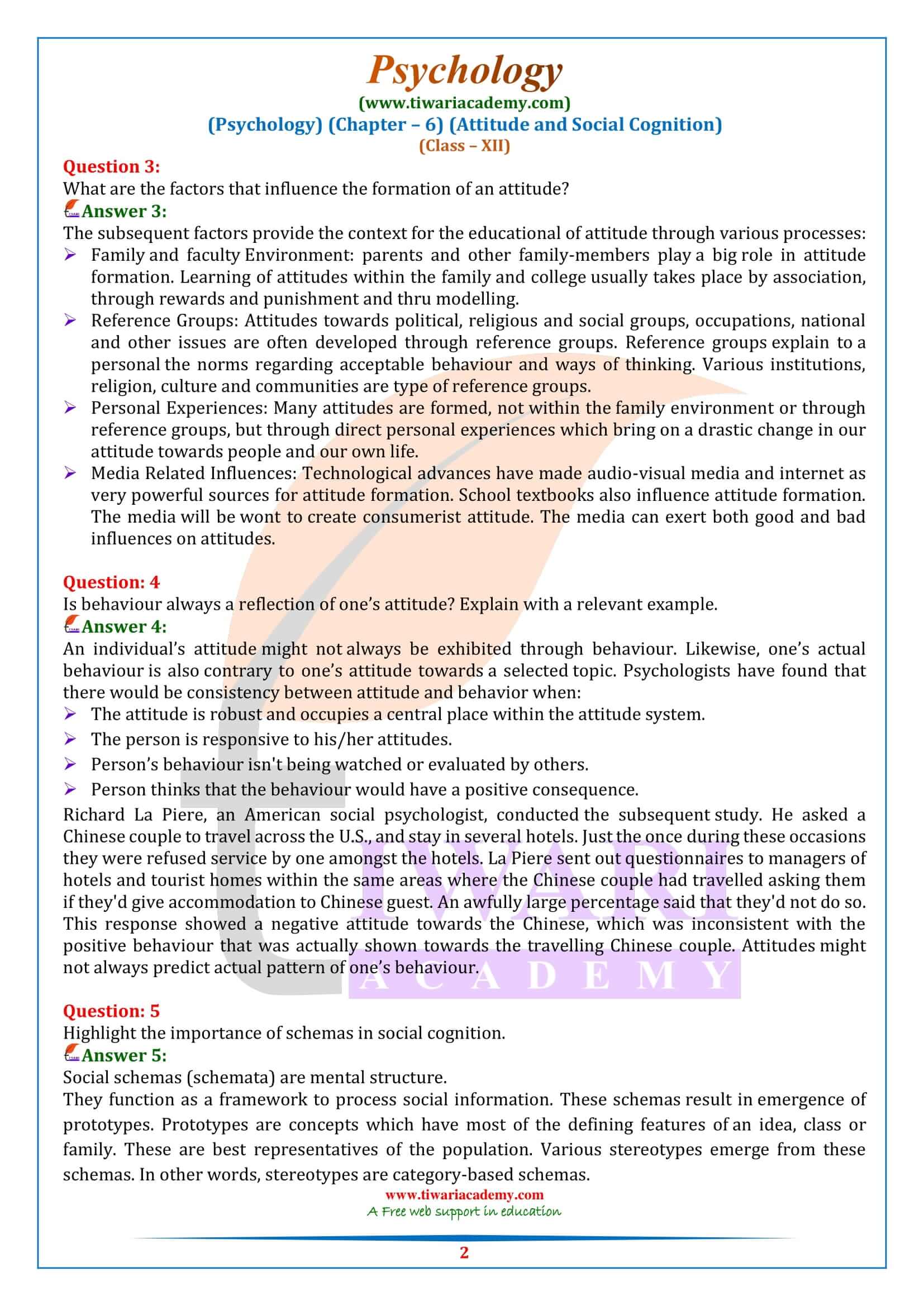 Class 12 Psychology Chapter 6 Attitude and Social Cognition Question Answers