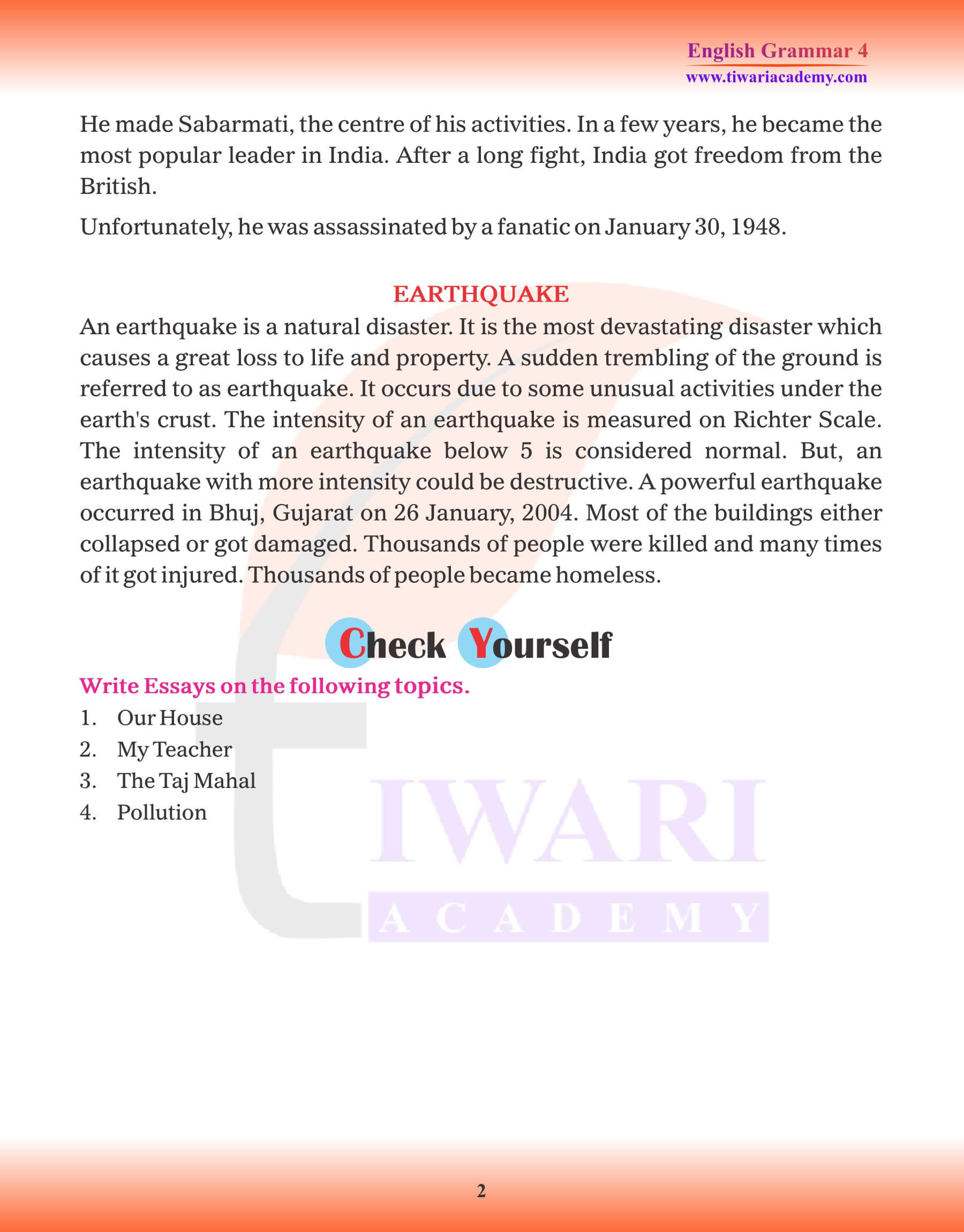 CBSE NCERT Class 4 English Grammar Chapter 18 Essay Writing