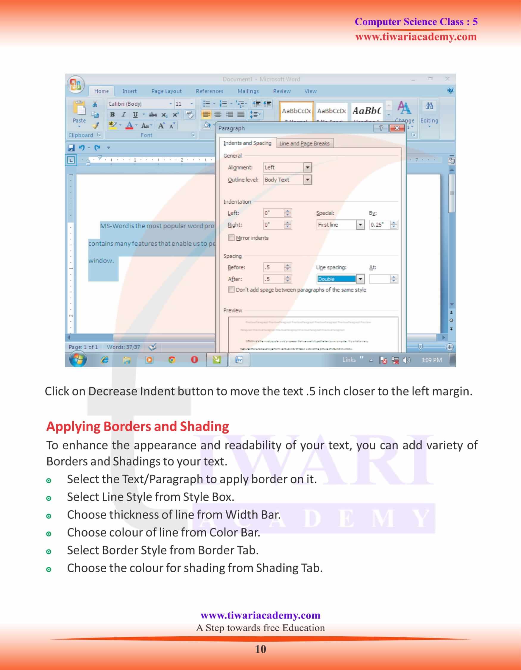 Click on Decrease Indent button to move the text .5 inch closer to the left margin.