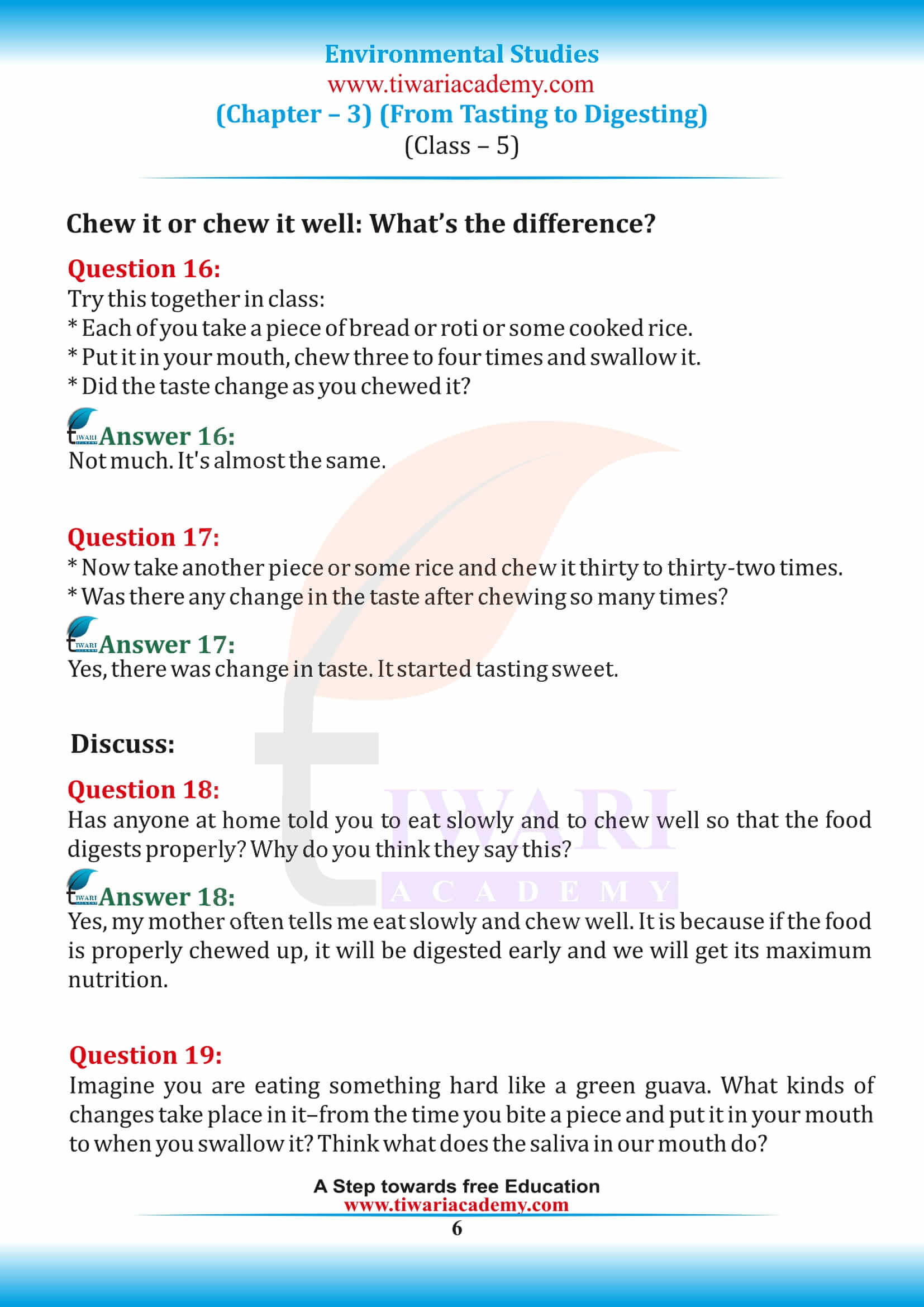 Class 5 EVS Chapter 3 Question Answers From Tasting to Digesting