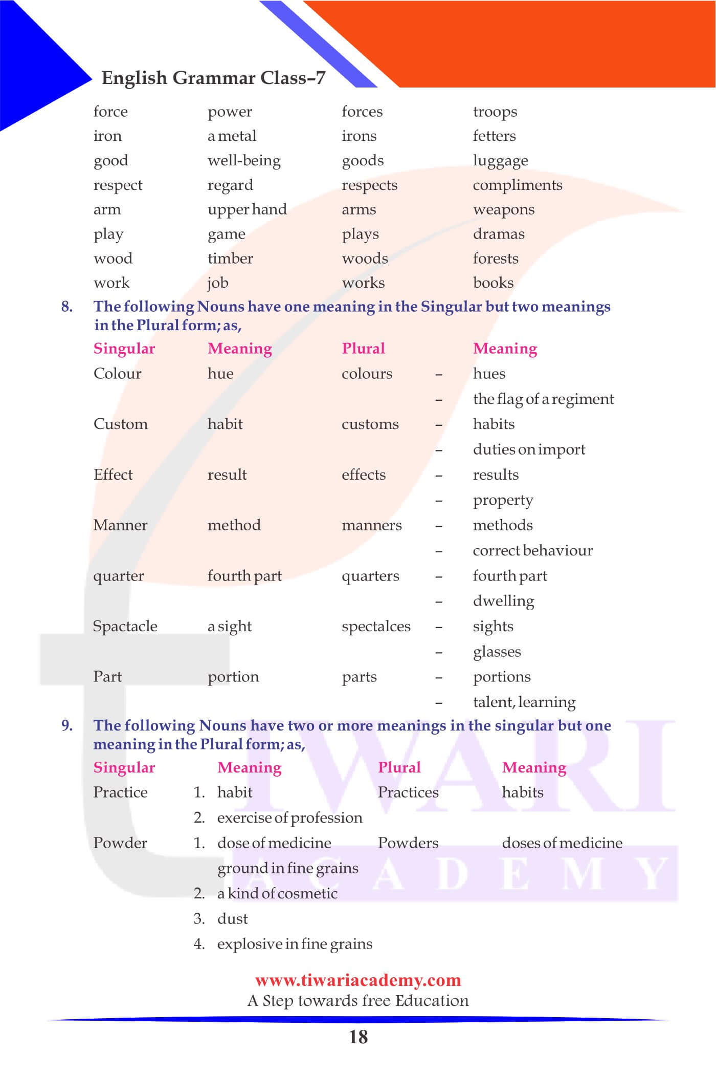 Class 7 English Grammar Chapter 3 Tne Noun Numbers