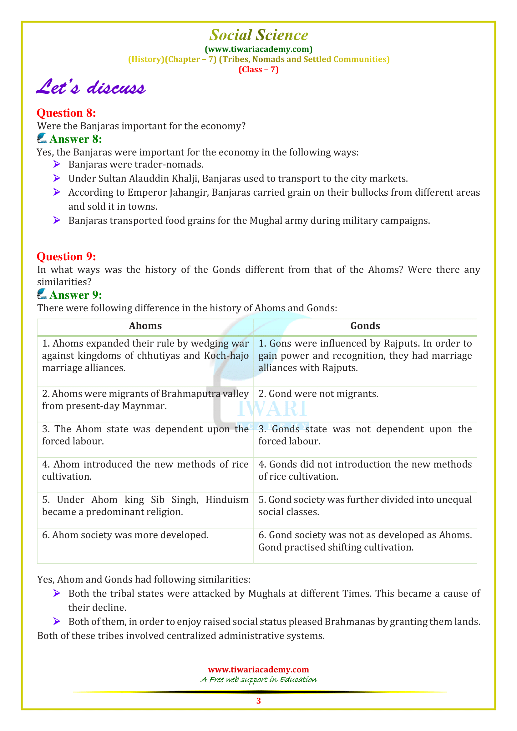 Class 7th History Chapter 7 Solution in Hindi and English Medium