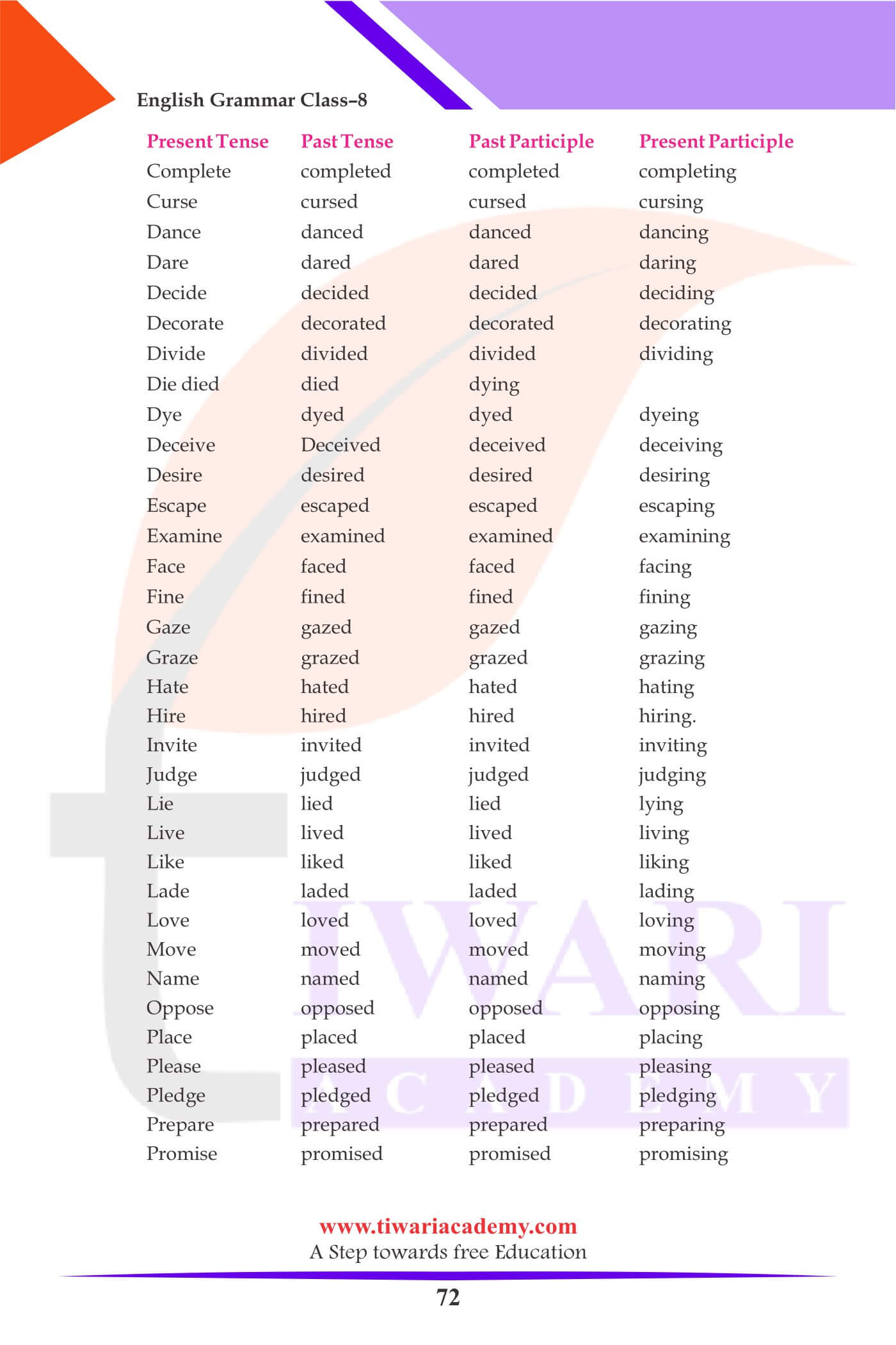 List of Weak Verbs: The method of adding “d”, “ed” or “t” to the present form is not uniform. Some verbs add “d”, “ed” or “t” without any other change.