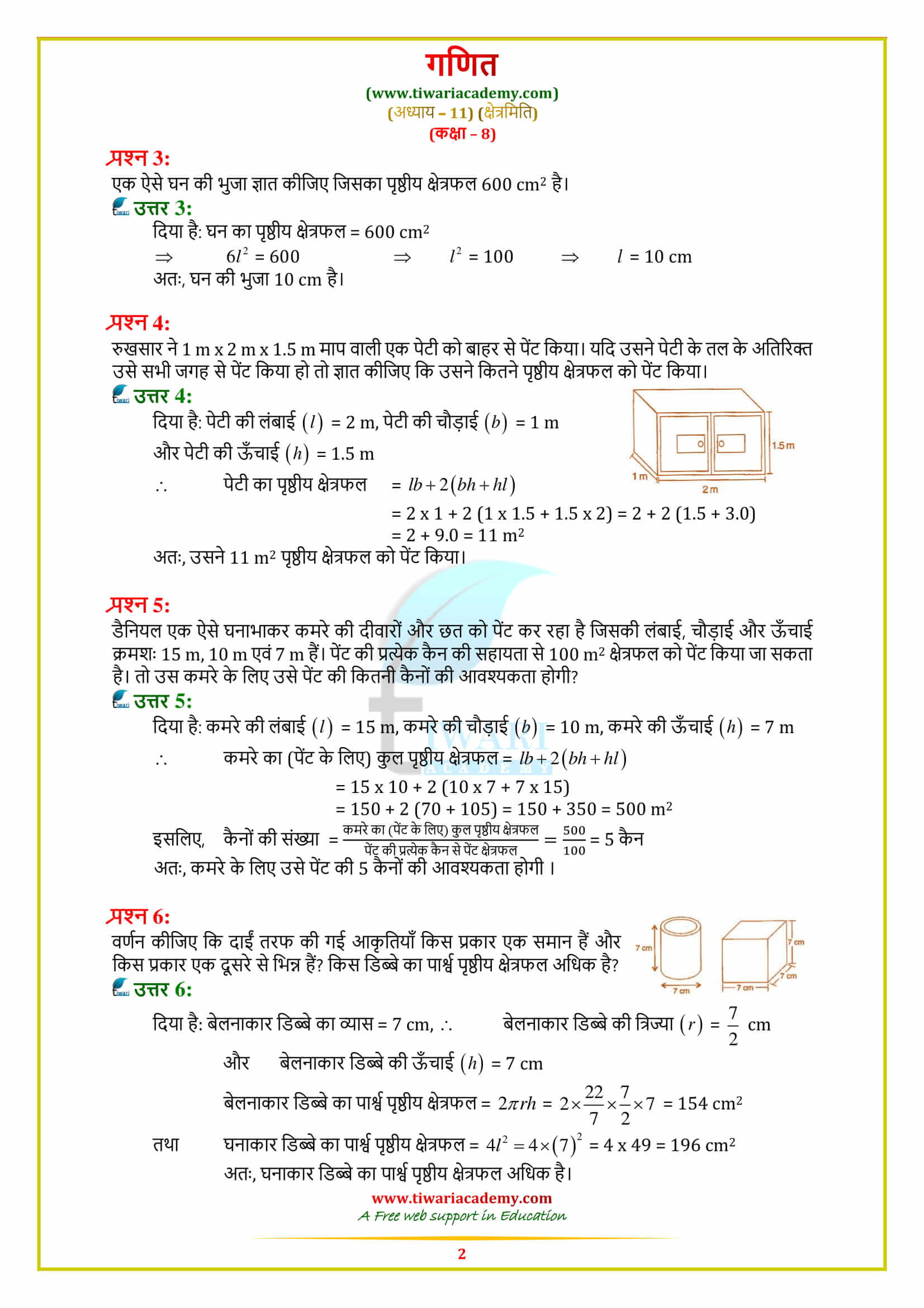 Class 8 Maths Chapter 11 Solutions in Hindi Medium