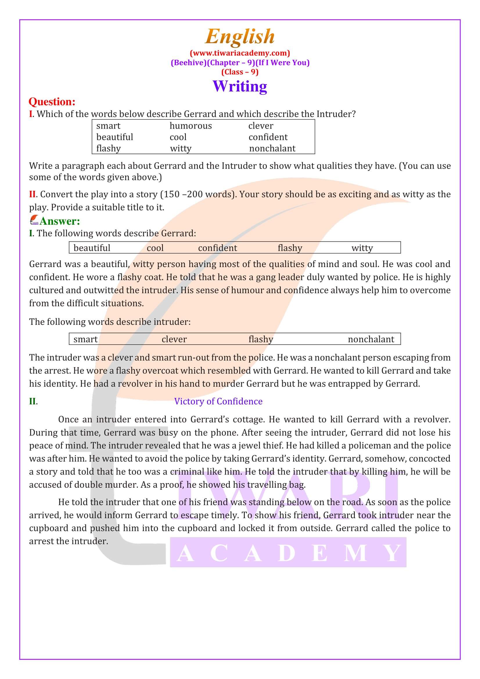 Question – Answers of Class 9 English Beehive Chapter 9 If I Were You are given below to use online or download in PDF for free. All the solutions are updated for new academic session 2025-26.
