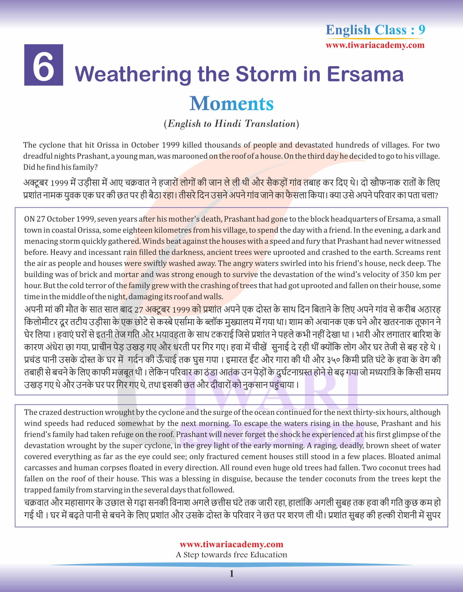 Free NCERT Solutions for Class 9 English Moments Chapter 6 modified for 2025-26 exams. Class 9 English Weathering the Storm in Ersama all answers. Tiwari Academy helps to improve the learning. We provide the hints for solution and Hindi Translation. The Hindi Version of the English book is helpful to learn the chapter. Use the given answers as reference and practice the lesson for exam.