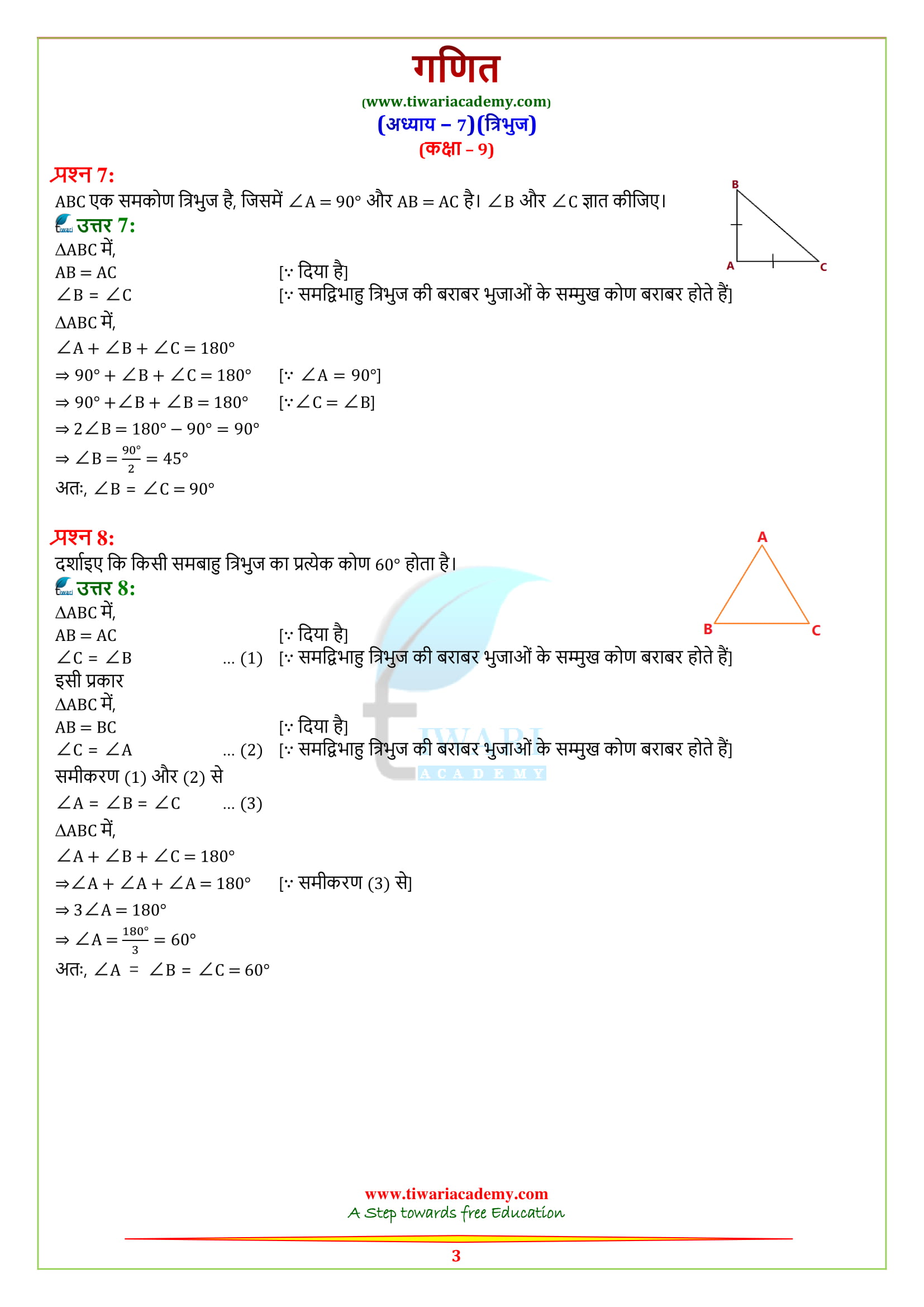 Class 9 Maths Chapter 7 Exercise 7.2 Solution in Hindi and English