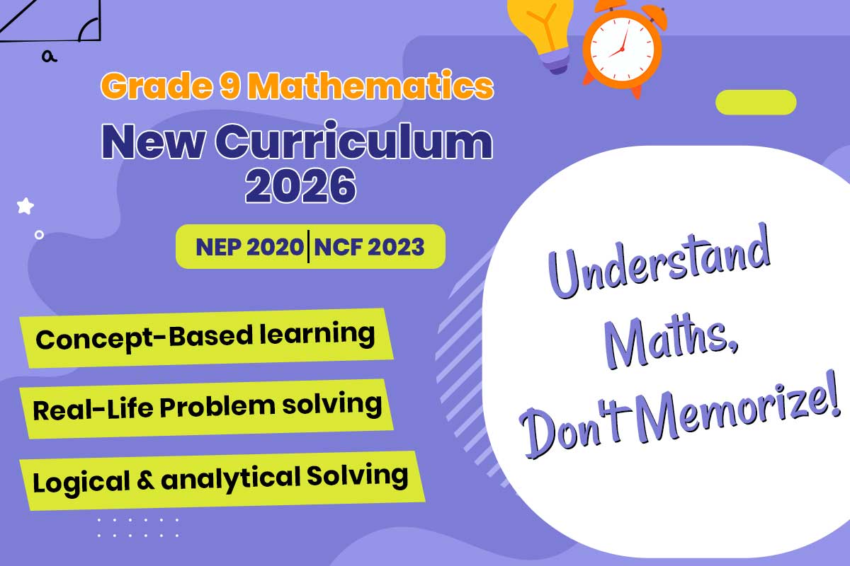 The Class 9 Maths Syllabus for the academic year 2026–27 introduces a modern approach to learning Mathematics based on NCF 2023. Instead of focusing only on formulas, the new syllabus encourages students to understand concepts, analyse problems logically and apply Maths in real-life situations. It includes core topics like Algebra, Geometry, Number Systems, Mensuration, Statistics and Probability, structured to build a strong academic foundation for higher classes.