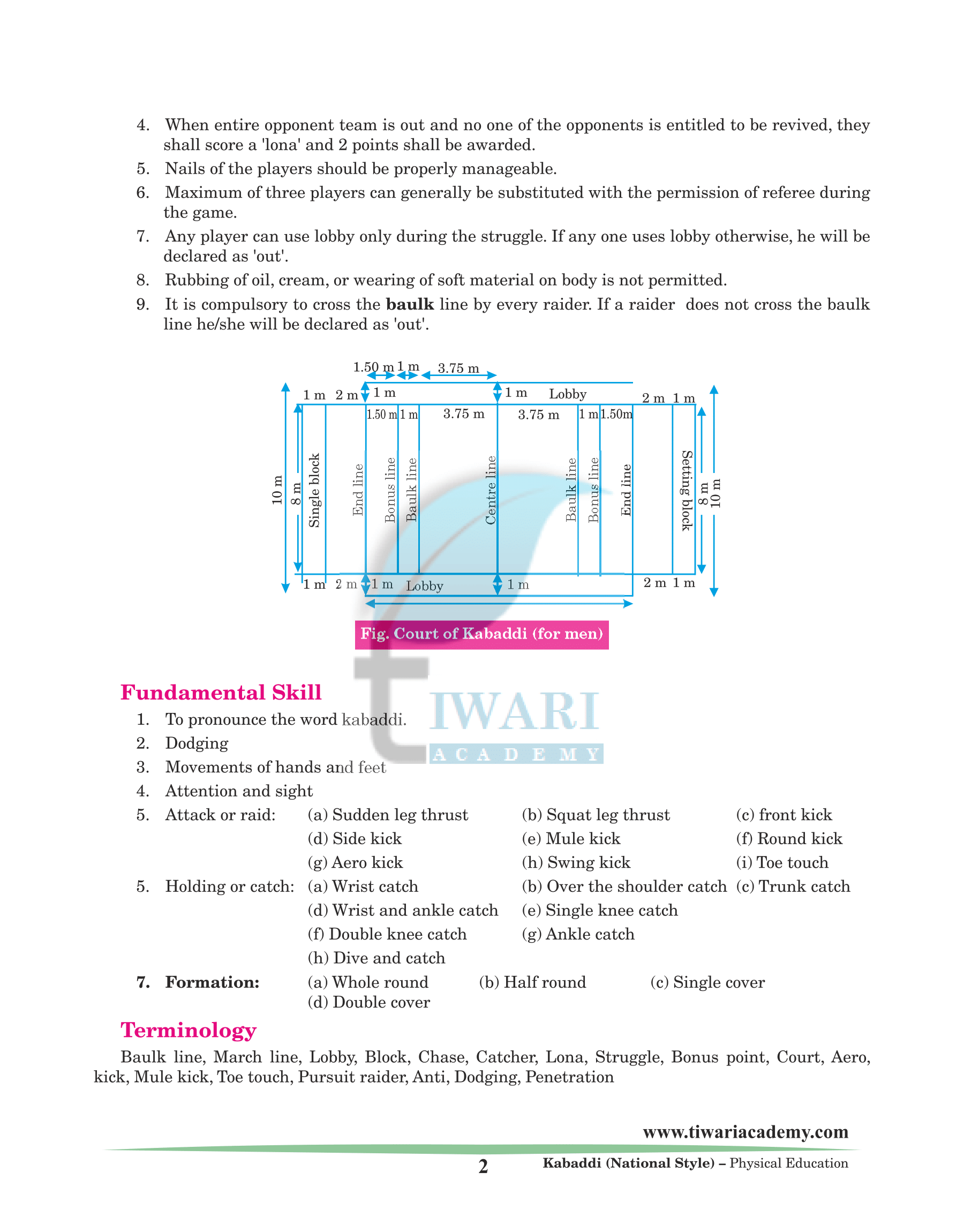 | Dimension of the playfied of Kabaddi: a. For men or senior | 13 × 10 m |